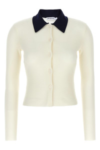 cod. PF25097CCCREAM Merino wool Cream Merino Wool cardigan with contrast shirt collar, front button closure, and long sleeves. Color: White Size & Fit: true to size fit Composition: 100% wool Made in: China