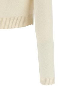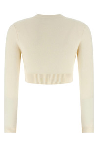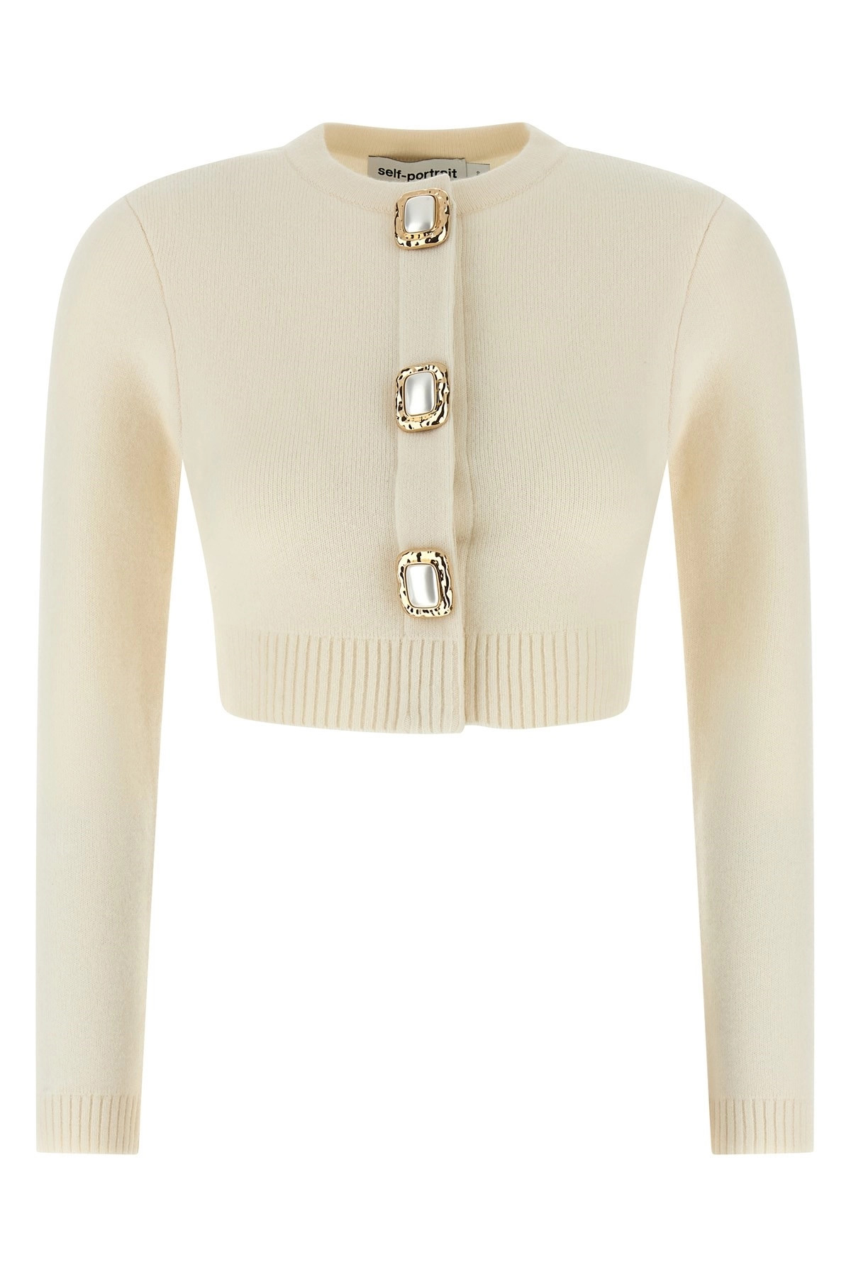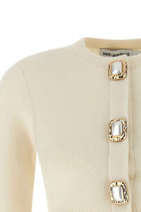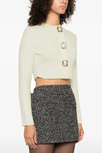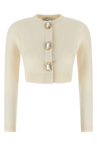 cod. AW25018CCCREAM 'Cream Wool' wool cardigan, crop model, front hidden snap button closure with overlapping jewel buttons, crew neck, long sleeves. Color: White Size & Fit: true to size fit Composition: 93% wool 6% polyamide 1% elastane Made in: China