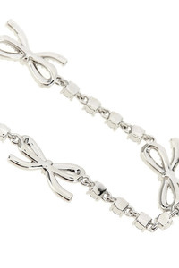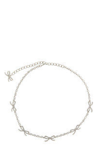 cod. RS26611NSLSILVER 'Crystal Bow' metal necklace with crystals and bows, adjustable snap hook closure. Color: Silver Size & Fit: W 41 x H 2 cm Composition: 100% copper Made in: Hong Kong