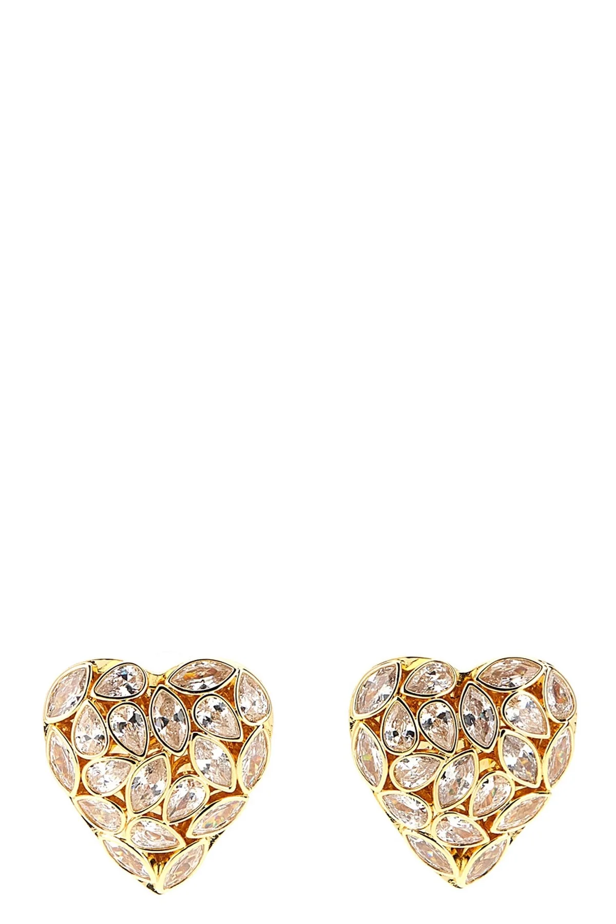 cod. RS26617EGDGOLD Embellished Heart' metal earrings with all-over crystals, heart shape, pin closure. ITEM CANNOT BE RETURNED Color: Gold Size & Fit: W 3.5 x H 3.6 cm Composition: 100% copper Made in: Hong Kong