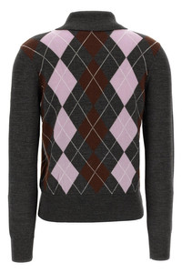 cod. RS26185TGRGREY Grey Argyle Lightweight' Argyle wool sweater with embroideries on the front and back, polo shirt style with jewel collar and buttons, long cuffed sleeves. Color: Gray Size & Fit: true to size fit Composition: 100% wool Made in: China