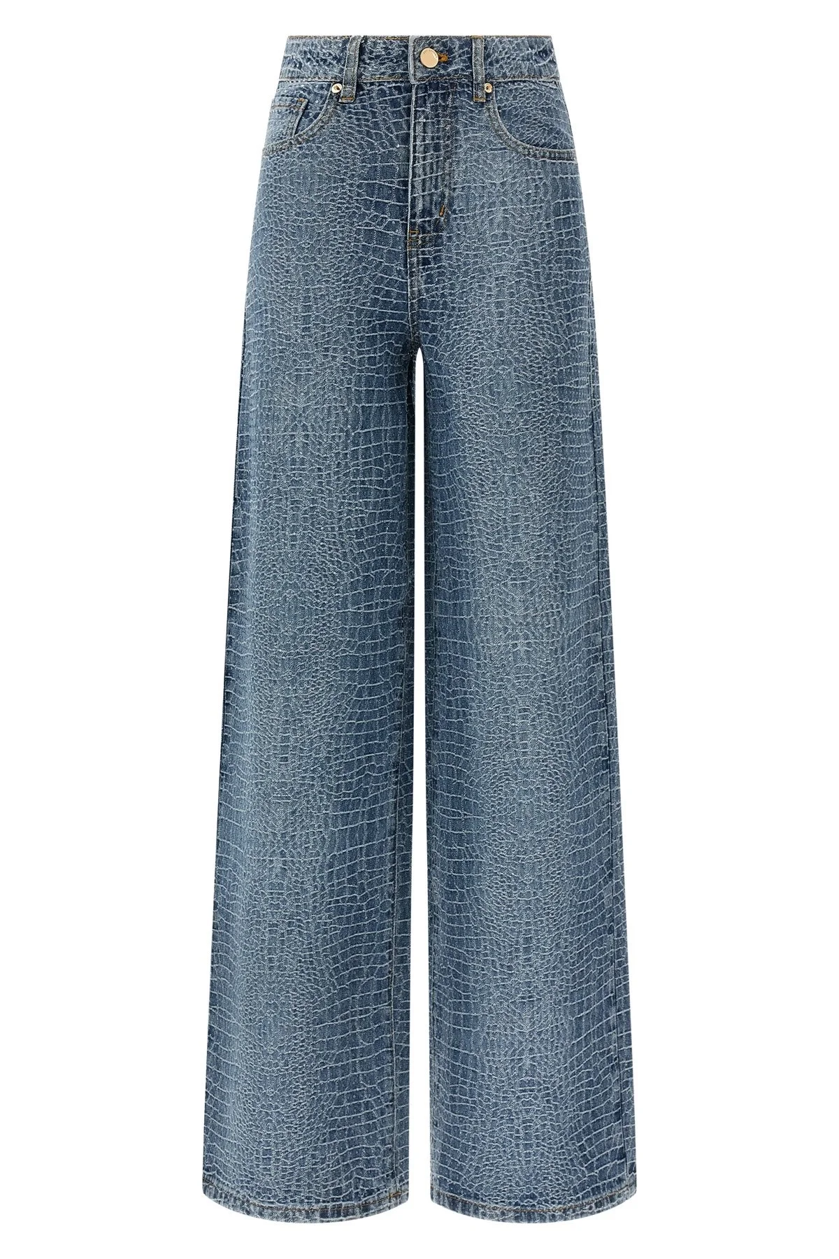 Rhinestone Croc Effect Wide Leg Jeans