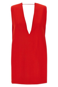 cod. 2512221143600002 'Agrume1234' mini dress in stretch viscose, maxi vest construction with asymmetrical back hem, deep V-neck front and back, sleeveless, side zip closure, leather belt to wear underneath. Color: Red Size & Fit: Comfort fit Composition: 97% viscose, 3% elastane Made in: Portugal