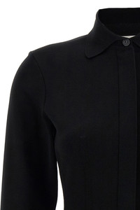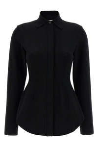 cod. 2522346063600001 'Baffo1234' stretch viscose knit shirt with hourglass silhouette with pleats, zip and front button closure, long sleeves and asymmetric hem. Color: Black Size & Fit: Slim fit Composition: 72% viscose, 28% polyester Made in: Romania