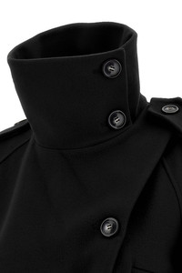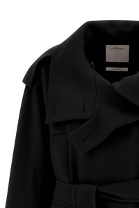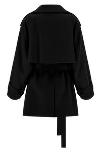 cod. 2522016063600013 'Bouquet1234' short double-breasted trench coat in pure wool with front button closure, lapel collar, pockets, long sleeves, back cape, removable belt. Color: Black Size & Fit: oversized fit Composition: 100% virgin wool Made in: China