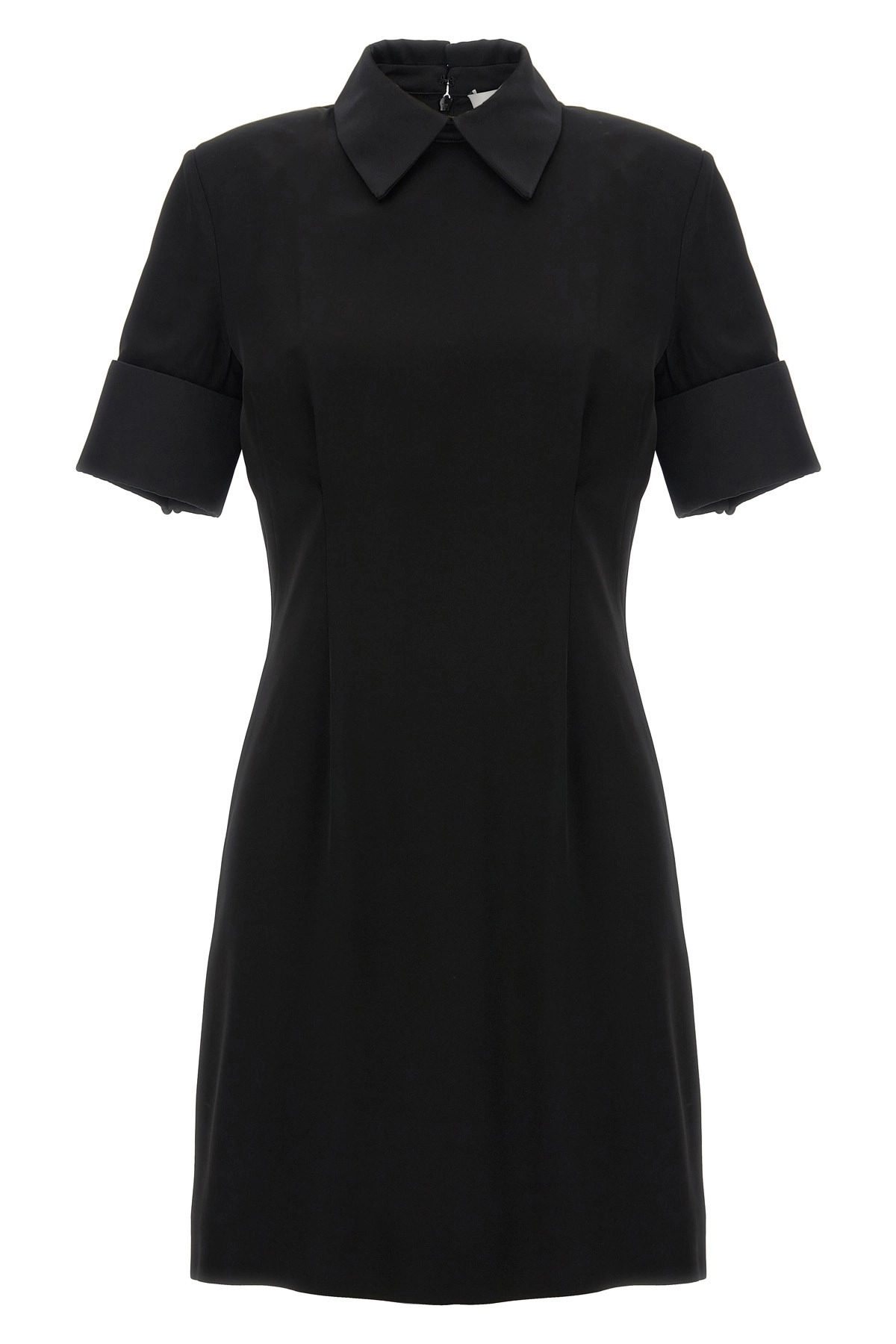 cod. CIPRO003 'Cipro' dress in matte viscose satin, collar and cuffs with cufflinks in heavy satin exploded fabric, front pleats at the waist, back zip closure. Color: Black Size & Fit: true to size fit Composition: 100% viscose Made in: Portugal