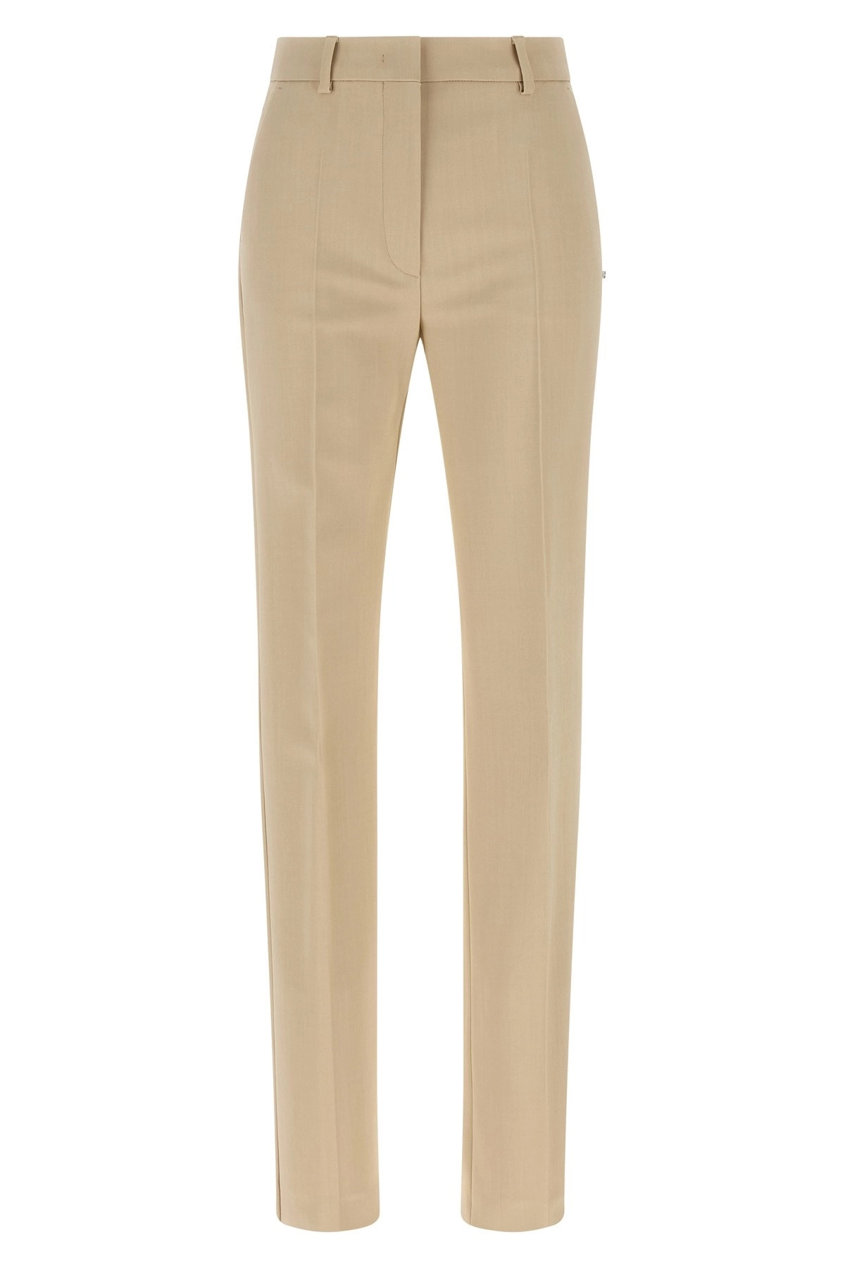 cod. 2522136051600002 'Fetta' trousers in double stretch viscose cloth, cigarette style with slightly low waist, stretched pleat, zip hook and front button closure, pockets, back split on the hem. Color: Beige Size & Fit: Slim fit Composition: 97% viscose, 3% elastane Made in: Poland