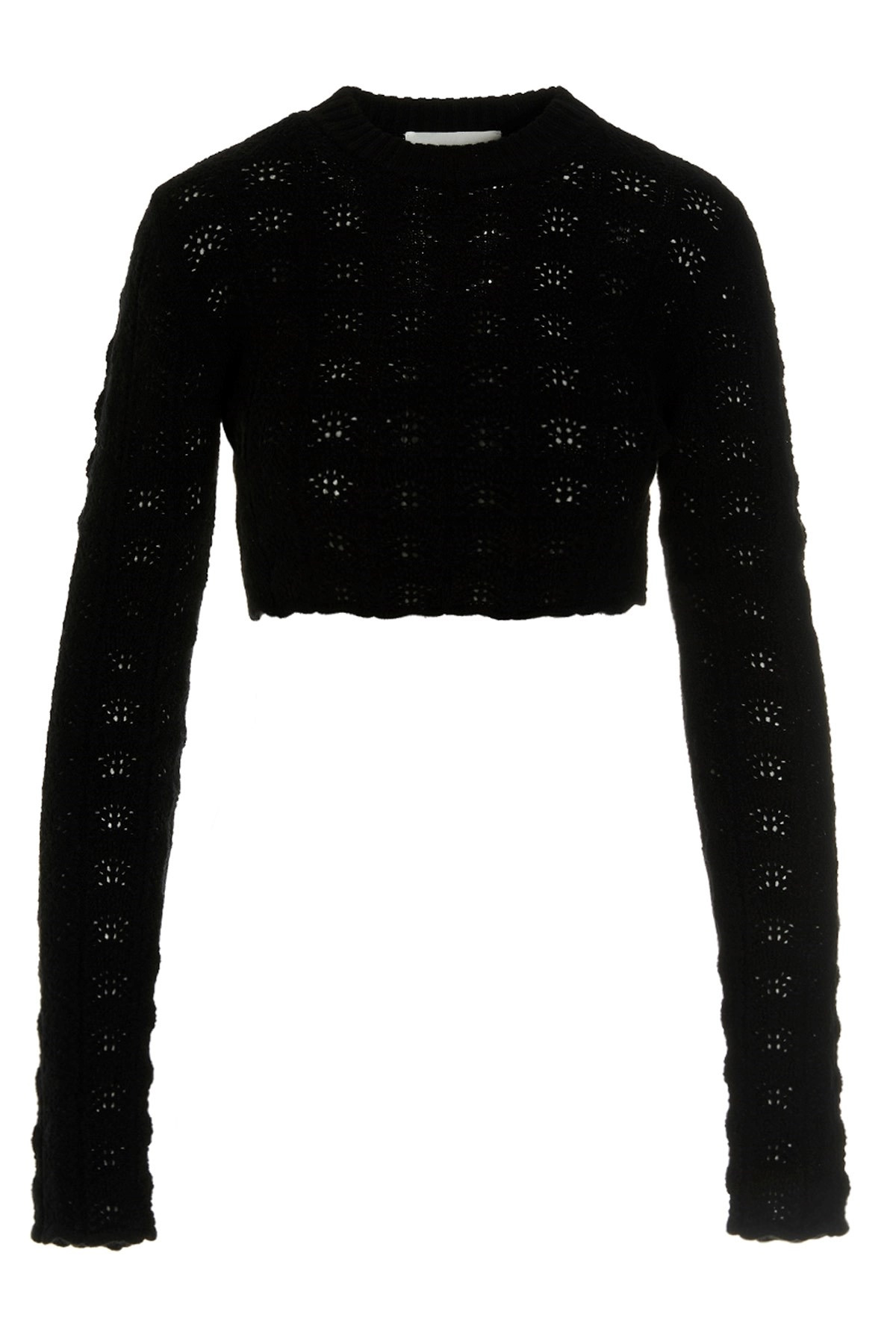 cod. MEDEA006 Medea' processed wool and cachemire sweater with crewneck, long sleeves and a cropped style. Color: Black Material: 80% wool 20% cachemire Size &Fit: True to size fit