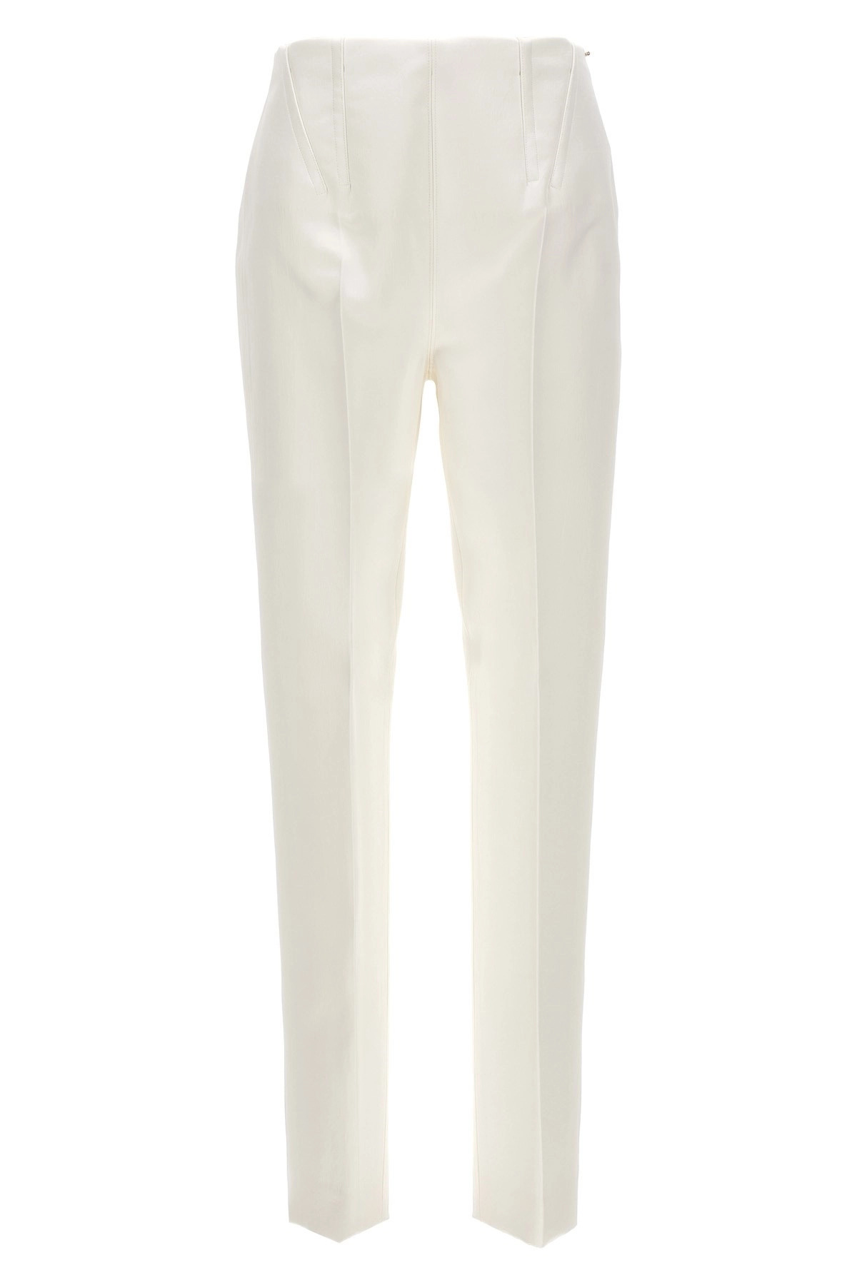 cod. NETTO002 'Netto' trousers in heavy bonded satin, reinforced basque with stitched inner splints, back zip closure, zip detail on the bottom of the leg, low waist. Color: White Size & Fit: true to size fit Composition: 100% acetate