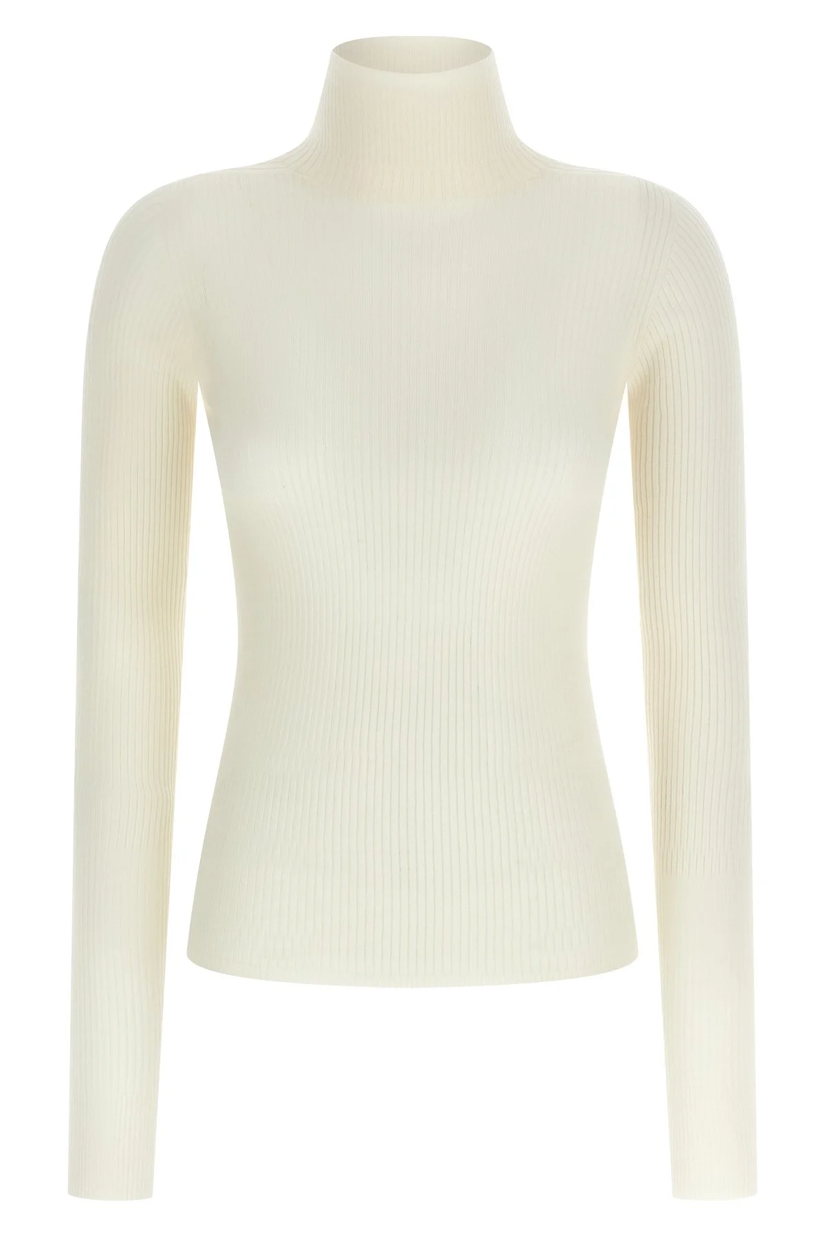 cod. 2522366012600001 'Niagara' turtleneck sweater in pure virgin wool ribbed yarn, seamless knit, high neck, long cuffed sleeves. Color: White Size & Fit: true to size fit Composition: 100% virgin wool Made in: Italy