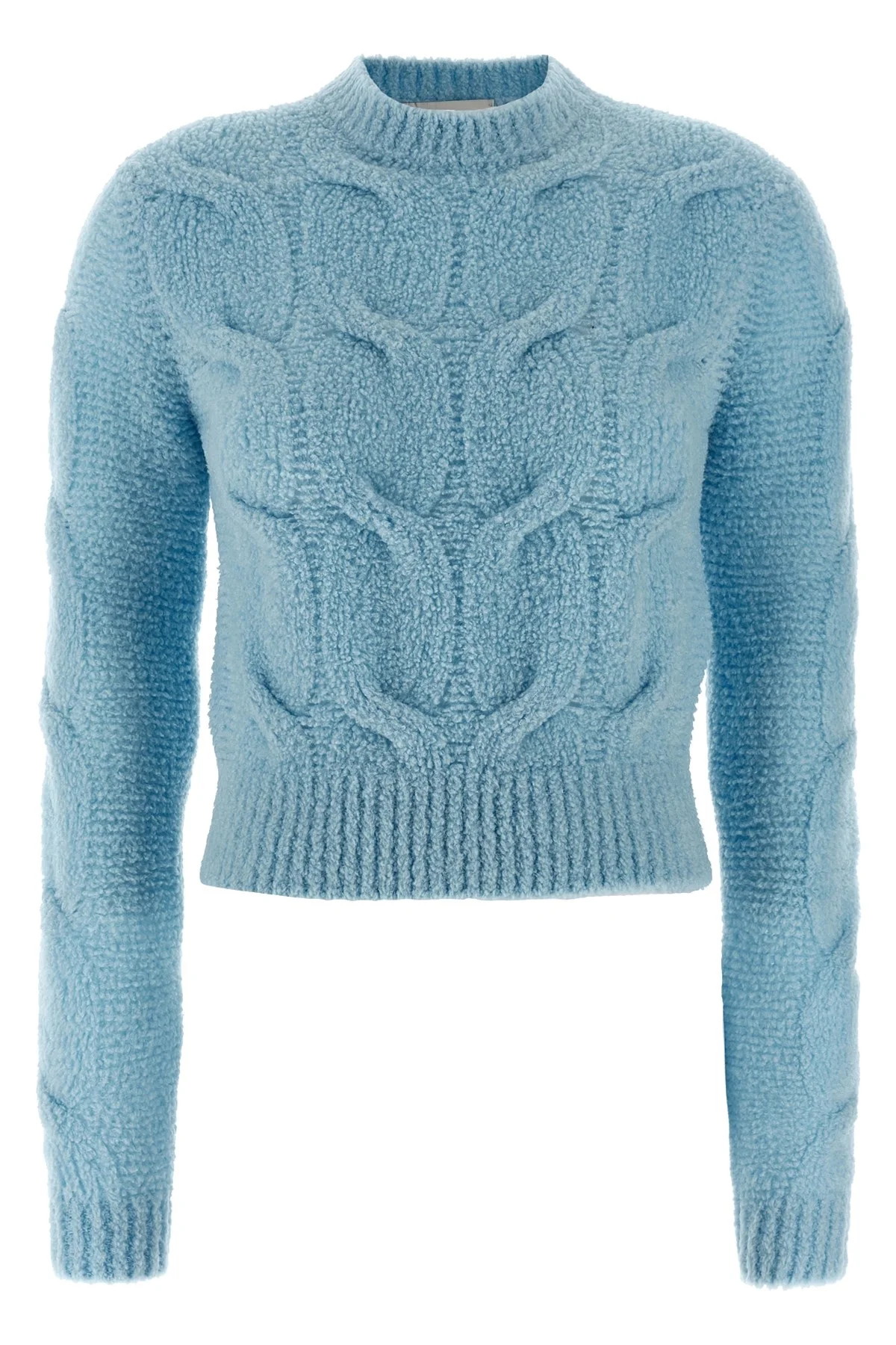 cod. 2522366162600002 'Nuvole' wool blend sweater with boucle effect textured braids, crop model, crew neck, long cuffed sleeves. Color: Light Blue Size & Fit: true to size fit Composition: 80% wool, 20% polyamide Made in: Tunisia