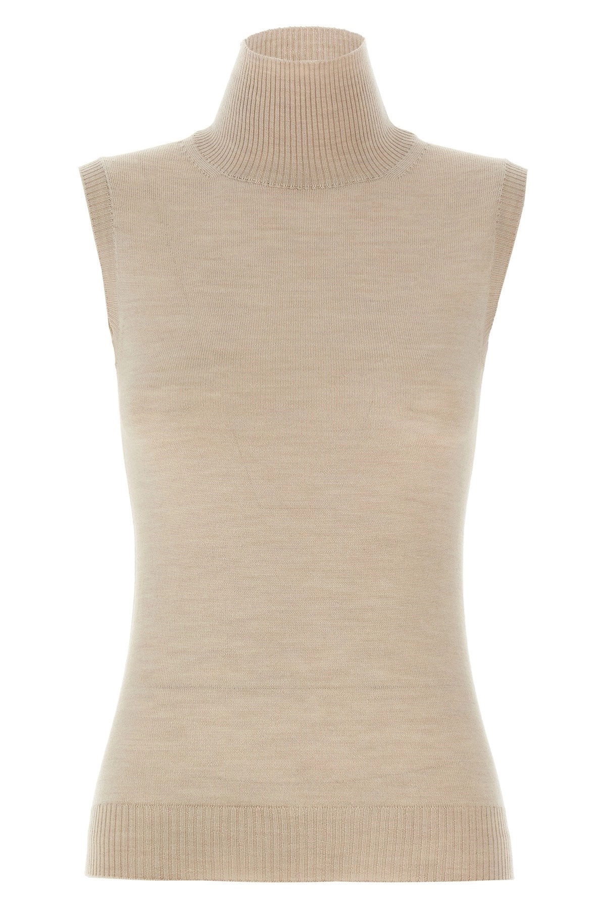 cod. 2522366011600002 'Vertigo' breast in pure wool yarn thin, high neck, sleeveless. Color: Beige Size & Fit: true to size fit Composition: 100% virgin wool Made in: Romania