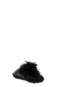 cod. 810466E002052019 'Backless Ryder' sabots in leather-effect fabric, teddy fabric lined interior, front metal detail, rubber sole. Color: Brown Size & Fit: EU WOMEN Composition: 51% polyurethane, 49% resin Made in: Italy