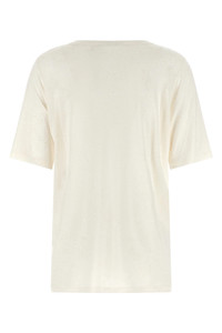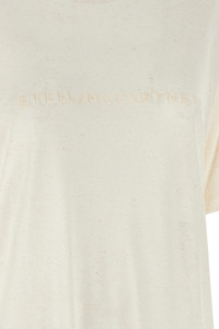 cod. 6J04333SQA309200 T-shirt in linen blend with front logo embroidery with tone-on-tone beads, crew neck, short sleeves. Color: White Size & Fit: True to size fit Composition: 86% viscose, 14% linen Made in: Italy