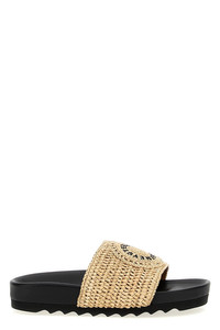 cod. 810387AFACL08536 'Elyse' sandals with raffia band with logo embroidery, ergonomic sole with serrated hem. SUSTAINABLE: Products that do not use leather respecting cruelty free ethics. Color: Beige Size & Fit: EU WOMEN Made in: Italy
