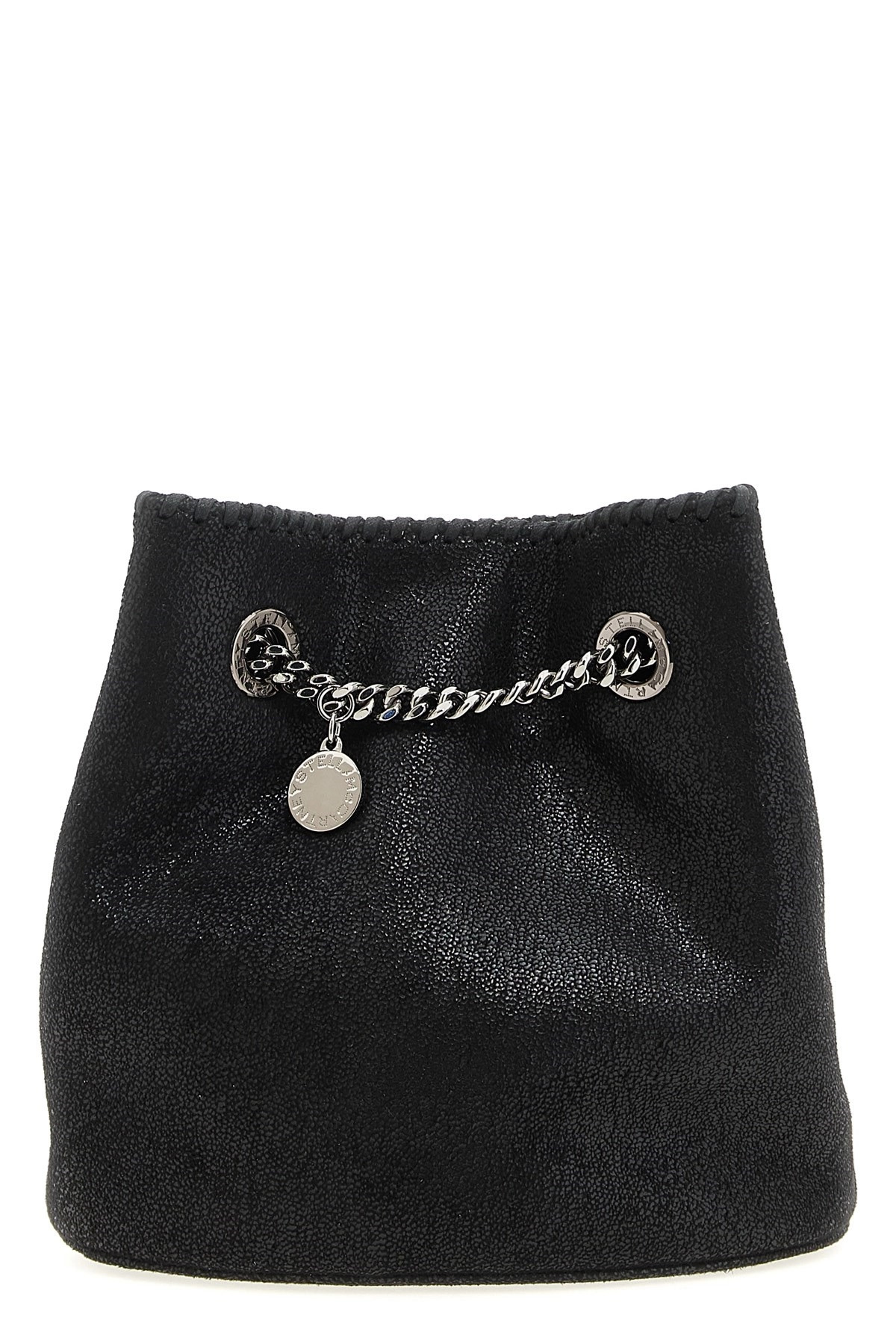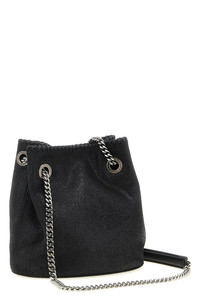 cod. 7B0058W91321000 'Falabella' bucket bag in Shaggy Deer matt vegan fabric with semi-gloss finish, magnetic closure, sliding diamond-effect shoulder strap with Alter Mat protection, medallion charm with engraved logo. SUSTAINABLE: Products that do not use leather respecting cruelty free ethics. Color: Black Size & Fit: W 19 x H 20 x D 12 cm Composition: 100% polyester Made in: Italy