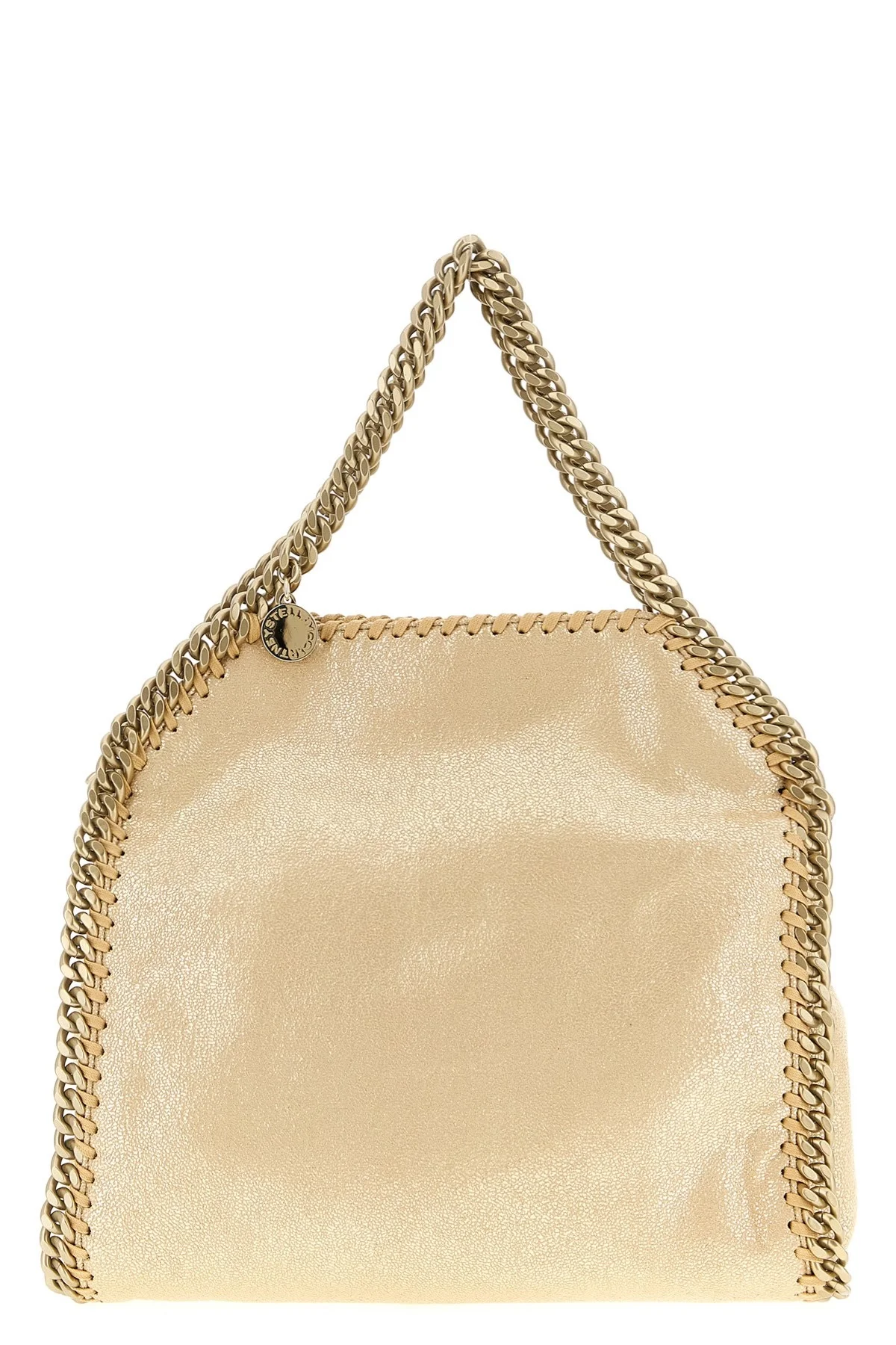 cod. 371223WP0650T701 'Falabella mini'in tessuto 'Eco Shiny Dotted Chamois' crossbody bag with magnetic closure, double fixed chain handle and mat effect chain shoulder strap. SUSTAINABLE: made without the use of leather, respecting cruelty-free ethics. Color: Gold Size & Fit: W 27 x H 24 x D 10 cm Composition: 100% polyester Made in: Italy