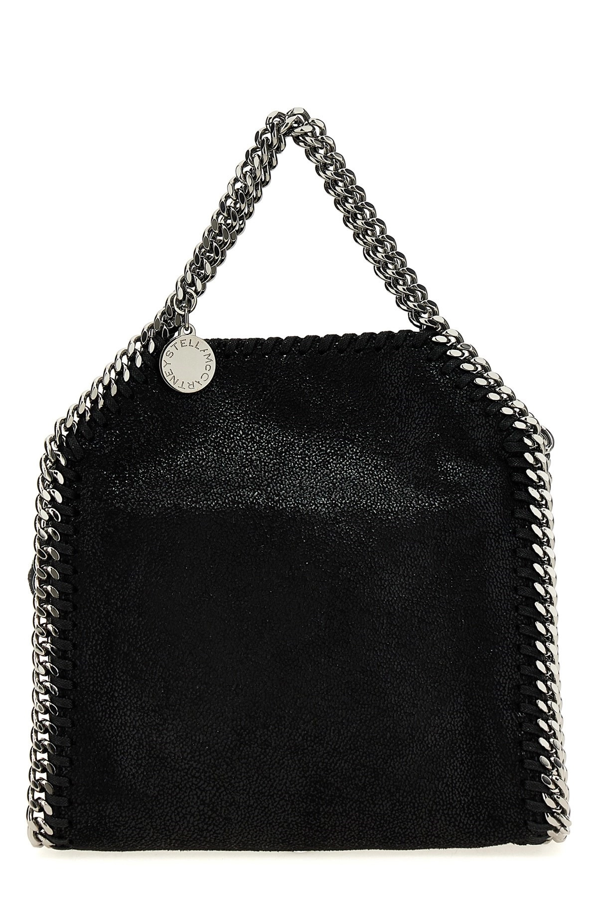 cod. 391698W91321000 Stella McCartney 'Falabella Tiny Tote' handbag in solid color eco Shaggy Deer featuring a top handle and an inner chain shoulder strap, snap button and silver hardware. JULIAN SUSTAINABLE - The products are leather-free complying with cruelty-free ethics. Color: Black Material: 100% polyester Made in: Italy Size&Fit: W 18 x H 17.5 x D 6 cm Strap 60 cm 50 cm