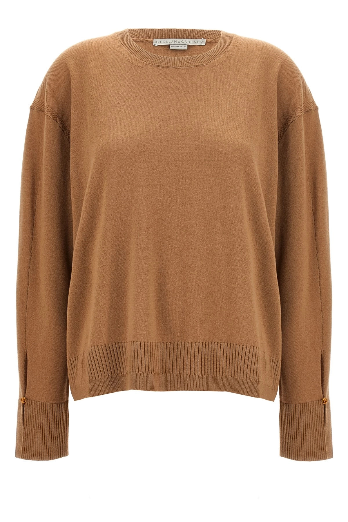 cod. 6K04213S24152745 'Iconic' wool sweater with round neckline, long sleeves with split and gold metal application. Color: Beige Size & Fit: True to size fit Composition: 100% wool Made in: Bulgaria