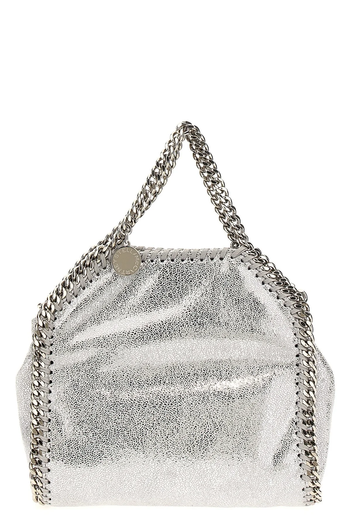 cod. 391698WP03018101 Falabella' micro shopping bag in Shaggy Deer with semi-gloss grain, double chain handle, chain shoulder strap, magnetic closure. Color: Silver Size & Fit: W 18 x H 17.5 x De 6 cm Composition: 100% polyester