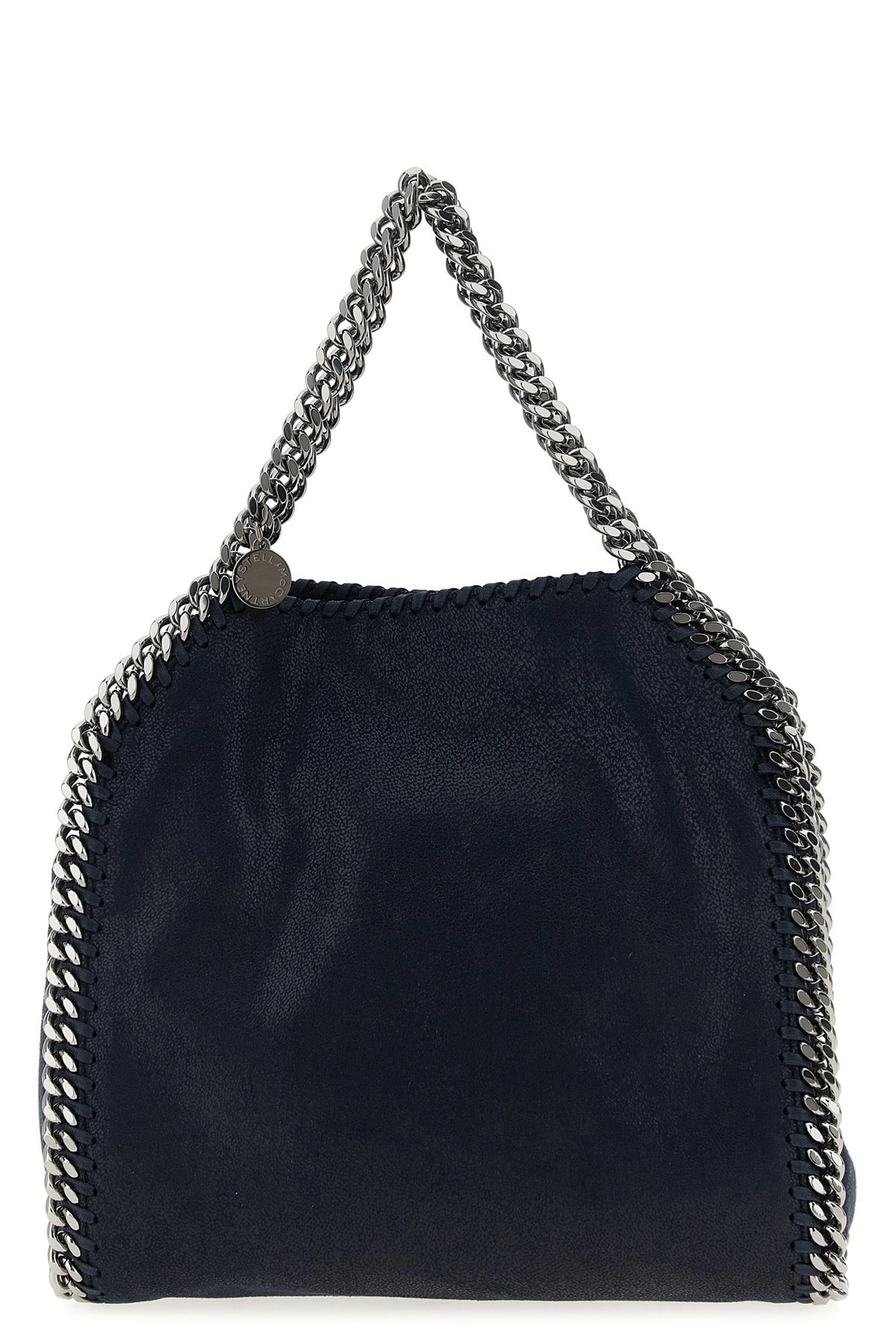 cod. 371223W91324061 Shaggy Deer vegan fabric ‘Mini Falabella’ handbag with semi-gloss finish, silver chain, double fixed handles, magnetic closure, chain shoulder strap, engraved logo medallion charm. SUSTAINABLE: Products that do not use leather in compliance with cruelty free ethics. Color: Blue Size & Fit: W 23, 5 x H 26, 5 x D 10 cm Handle: 14 cm Strap: 105 cm Composition: 100%cotton Made in: Italy