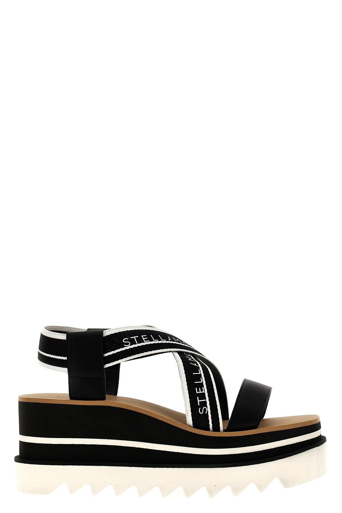 cod. 810162E000151065 'Sneak Elyse' sandal with plateu and rubber sole with serrated edge, sandal webbing in jaquard logo fabric. Color: White/Black Size & Fit: EU WOMAN wedges 80 mm Composition: 97%polyester 3%polyurethane