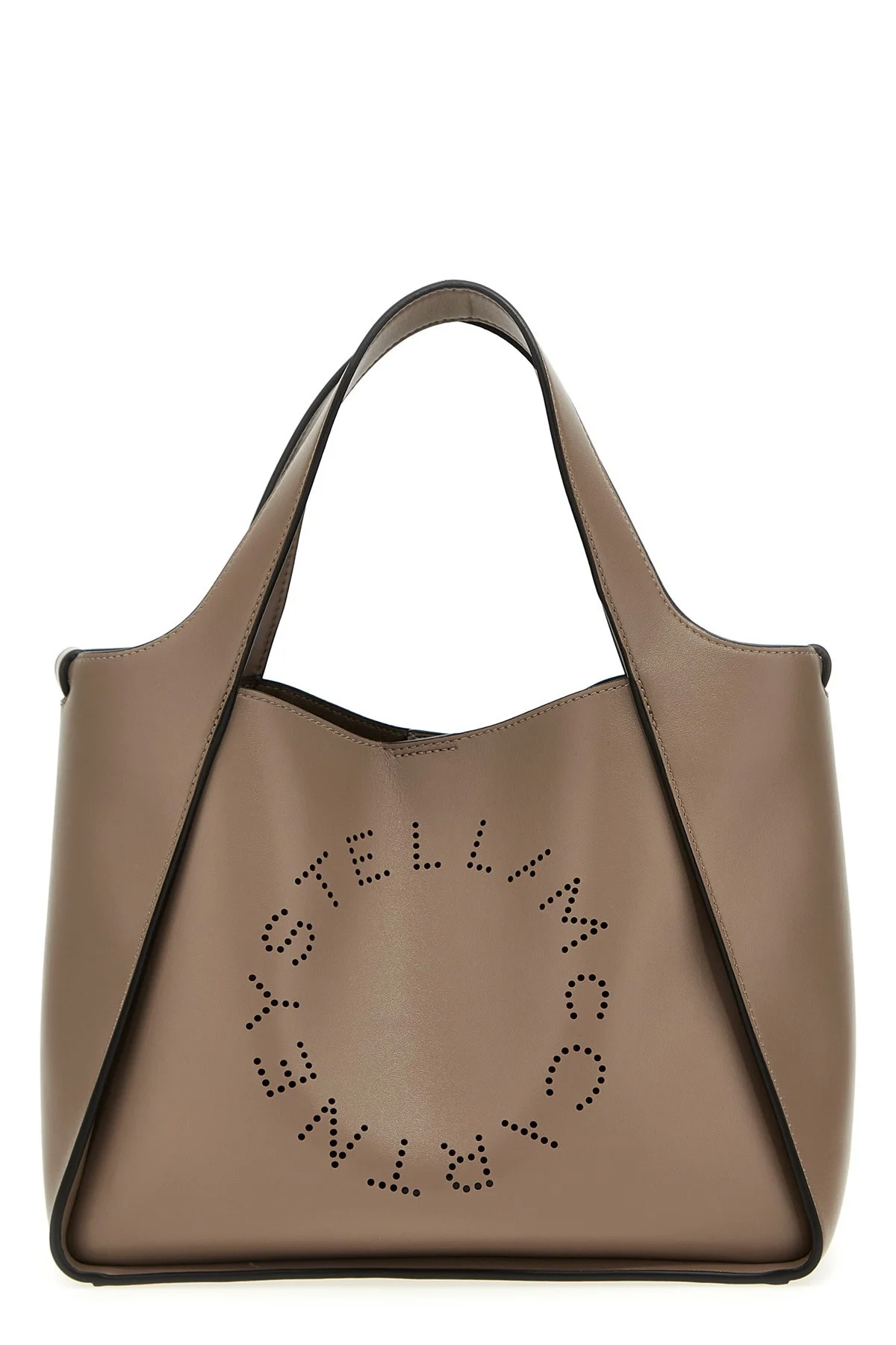 cod. 513860W85422800 Logo Stella' shopping bag in alter matte nappa with front openwork logo and a removable shoulder strap. JULIAN SUSTAINABLE: These products are leather-free complying with cruelty-free ethics. Color: Beige Material: 56% polyurethane 44% polyester Size&Fit: W 32 x H 25 x D 13 cm