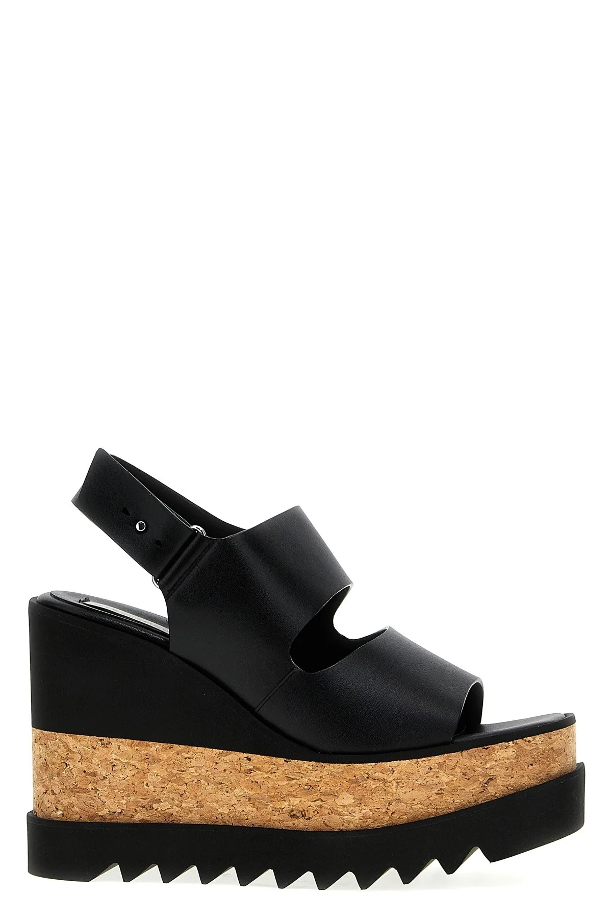 cod. 810392AP00P01000 'Sneak-Elyse' sandals in Alter Mat, adjustable strap, cork wedge, rubber sole. Color: Black Size & Fit: EU WOMEN Heel: 12 cm Composition: 53% polyester, 47% polyurethane Made in: Spain