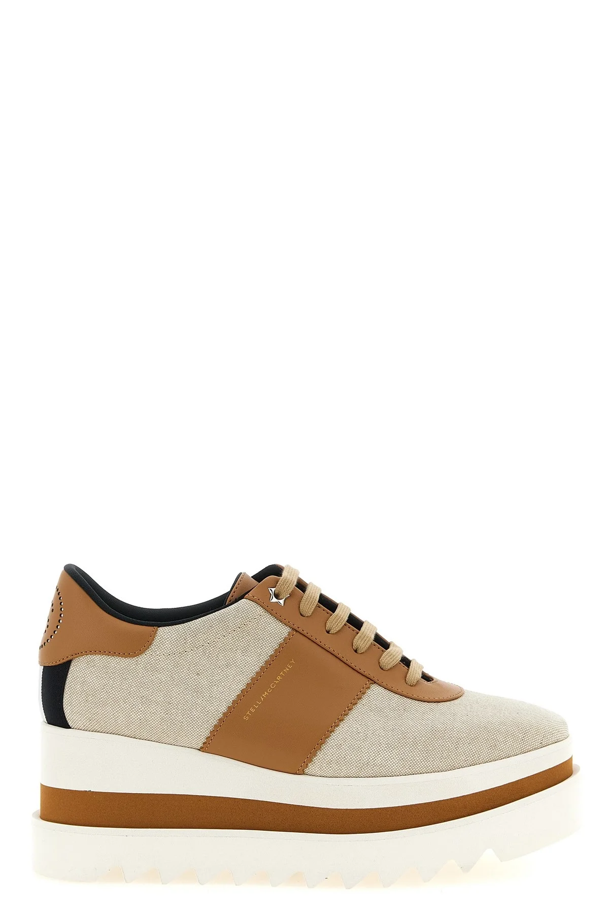 cod. 810672E002839043 'Sneak-Elyse' sneakers in Canvas and Alter Mat, side stripes and contrast heel with perforated logo, lace-up closure, side embossed logo, padded insole, wedge and platform, micro lightweight sole with contrasting notched edge. Color: Beige Size & Fit: EU WOMAN - Heels: 7.5 cm Composition: 100% viscose Made in: Spain