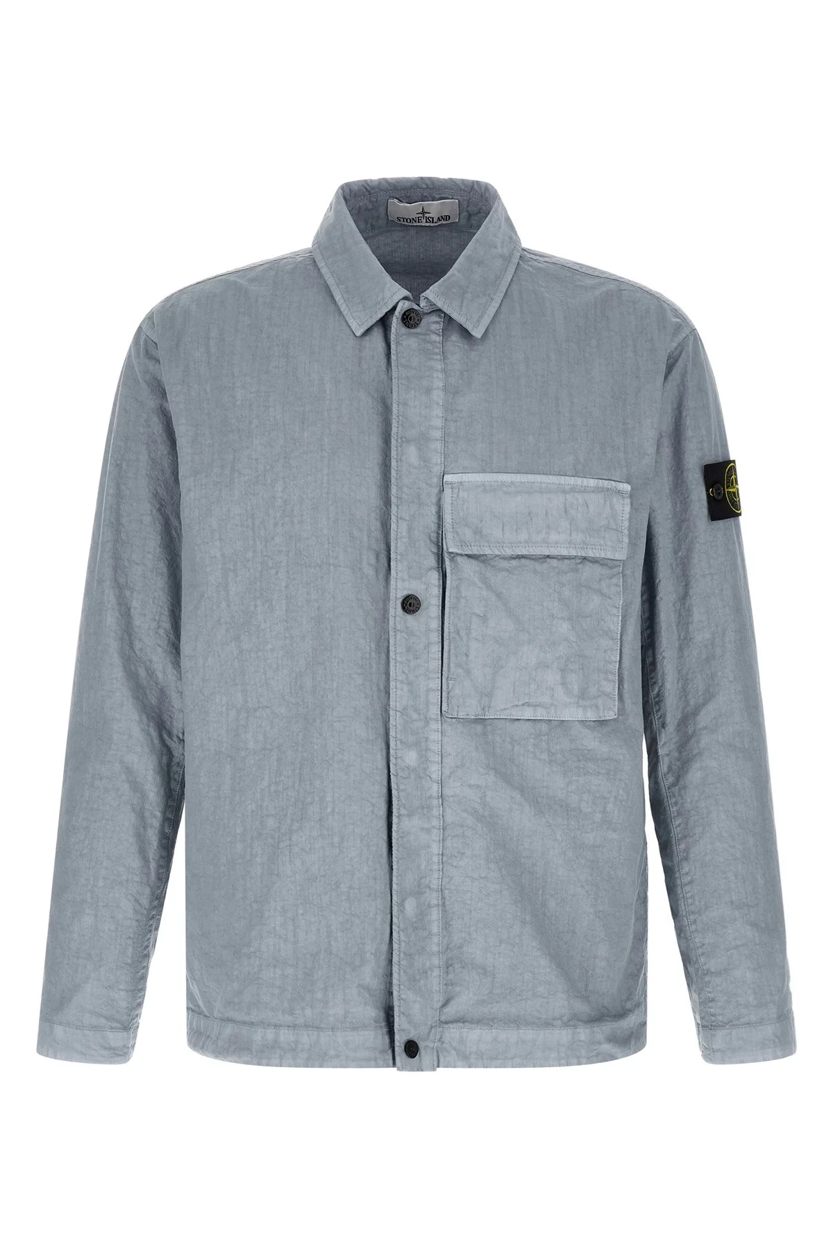 cod. L1S151200003S0069V0024 Panama woven calendered fabric 1200003 overshirt, an innovative 100% nylon Made in Japan fabric with a sensational natural look, garment-dyed marbled look, front snap button closure, breast pocket, long sleeves with dropped shoulder, cuffs and logo badge. Color: Light Blue Size & Fit: Comfort fit Composition: 100% polyamide fibers Made in: Vietnam PROMO CODE NOT APPLICABLE