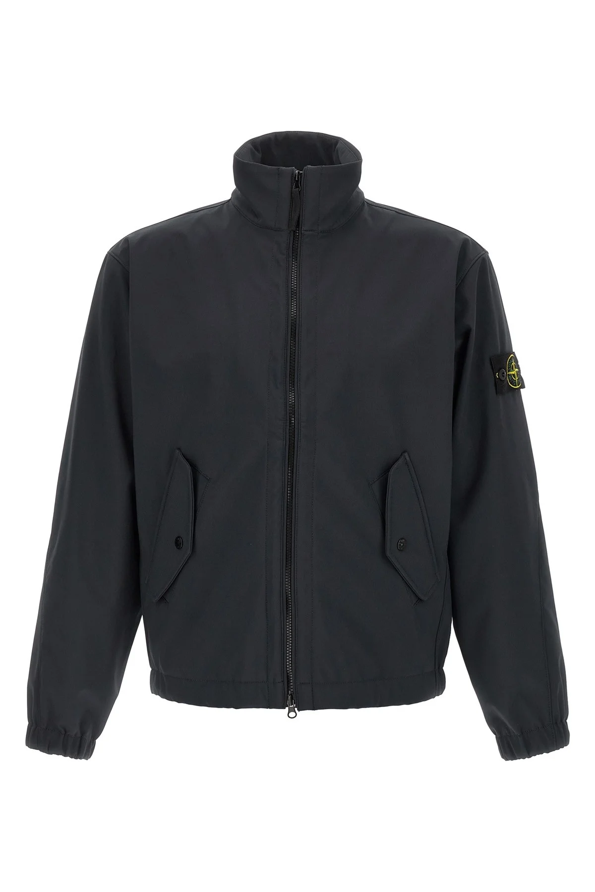 cod. L1S154100022S0A22V0020 '4100022' jacket in three-layer technical material with 8000 mm water column with outer part in stretch polyester canvas woven with e.dye® Waterless Color System™ technology yarns and inner part in textured polyester jersey with breathable and water and wind resistant membrane, high neck, front zip closure, pockets, long sleeves with elastic cuffs and logo badge applique, Back elastic band on the hem. Color: Blue Size & Fit: true to size fit Composition: 92% polyester, 8% elastane Made in: Indonesia PROMO CODE NOT APPLICABLE