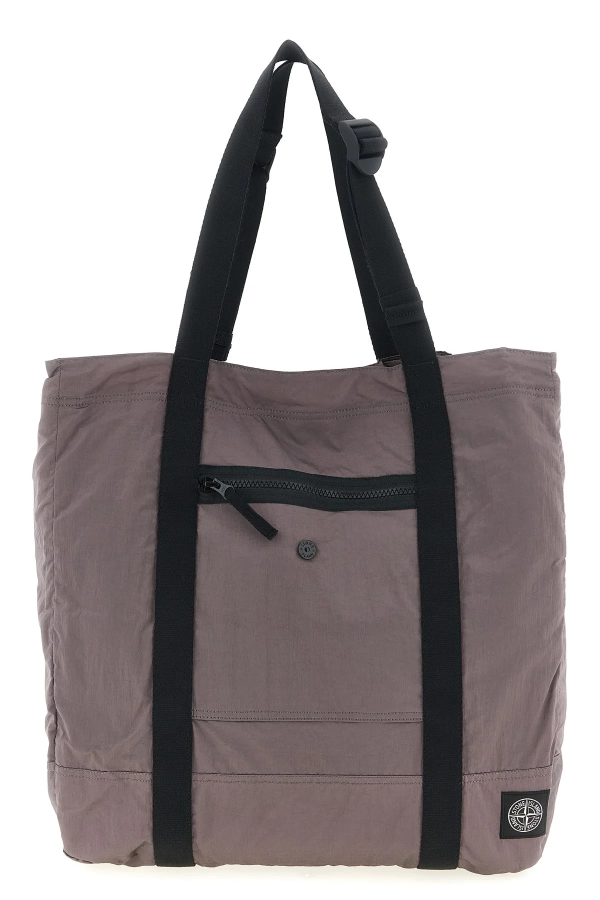 cod. L1S159200012S0251V008F '9200012' shopping bag in garment-dyed Nylon Metal with a wrinkled-effect two-color recipe, polyurethane lining, 'Compass' logo patch and front zip pocket, internal snap button closure, double adjustable handle. SUSTAINABLE: This product is made of ECONYL regenerated nylon.® Color: Purple Size & Fit: W 44 x H 47 x D 10 cm Composition: 100% polyamide fibers Made in: Indonesia PROMO CODE NOT APPLICABLE