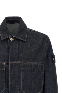 cod. L1S144100006S00J7VJ201 Cotton denim jacket with contrast stitching, concealed front button closure, pockets, long cuffed sleeves and tone-on-tone logo badge appliqued, unlined. SUSTAINABLE: This product is made of organic cotton. Color: Blue Size & Fit: true to size fit Composition: 100% cotton Made in: Romania