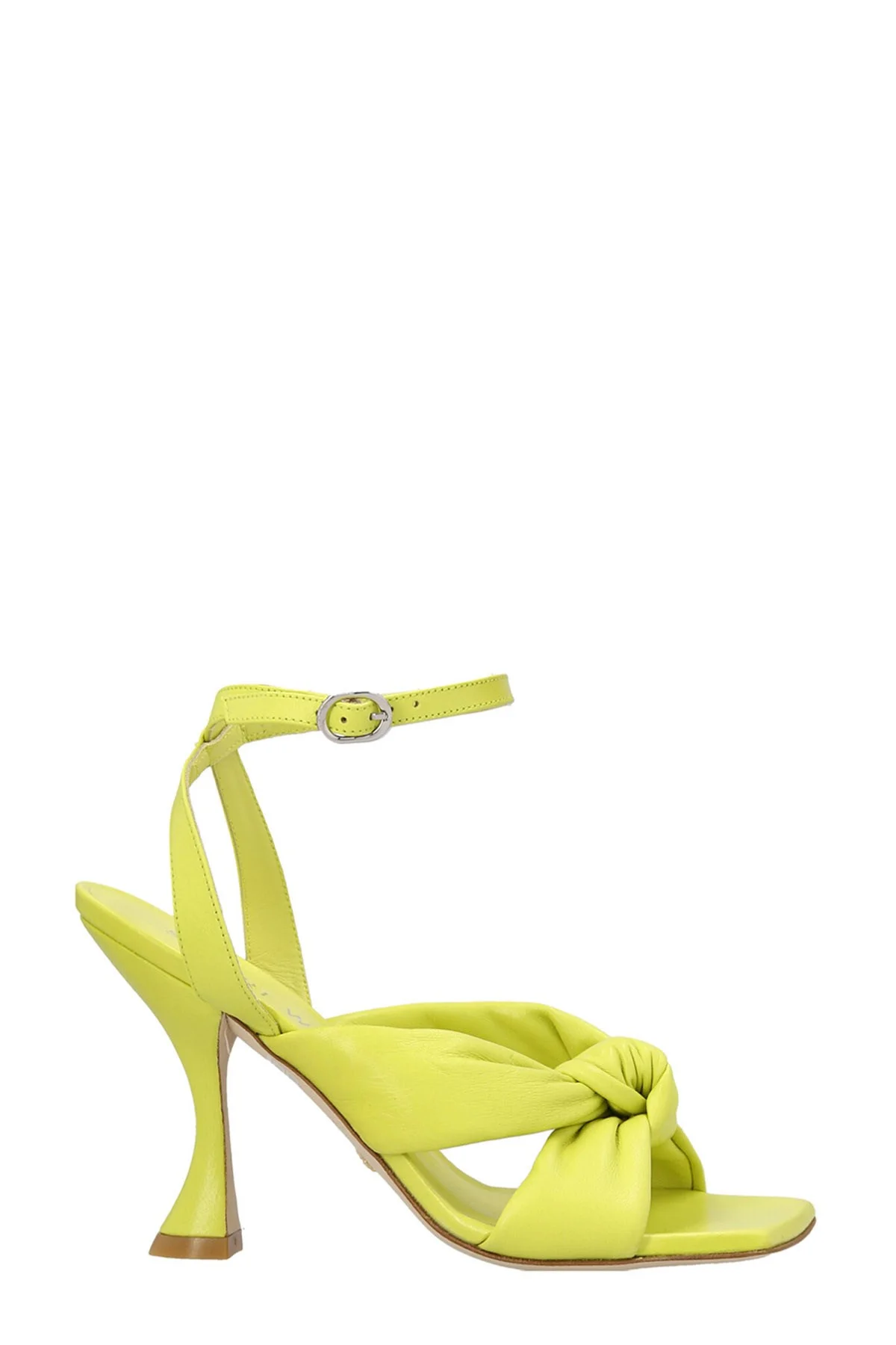 cod. SD881PISTACHIO 'Playa' nappa sandals with front knot detail, square toe, ankle strap, sculpted heel. Color: Green Main: 100% lamb leather Made in: Spain Size & fit: EU WOMAN Heel: 10 cm