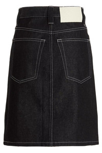 cod. CRTWWSKR0227463 Denim skirt with contrast stitching, a 5-pocket style with a visible button closure. Lining with striped print. Color: Blue Made in: Italy Size & Fit: True to size fit