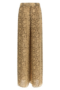 cod. T190425BTNP264NATURALPYTHON 'Lena' pants in natural python print georgette, medium elastic waistband, wide and straight leg, pockets, lining. Color: Beige Size & Fit: true to size fit Composition: 100% polyester Made in: Italy