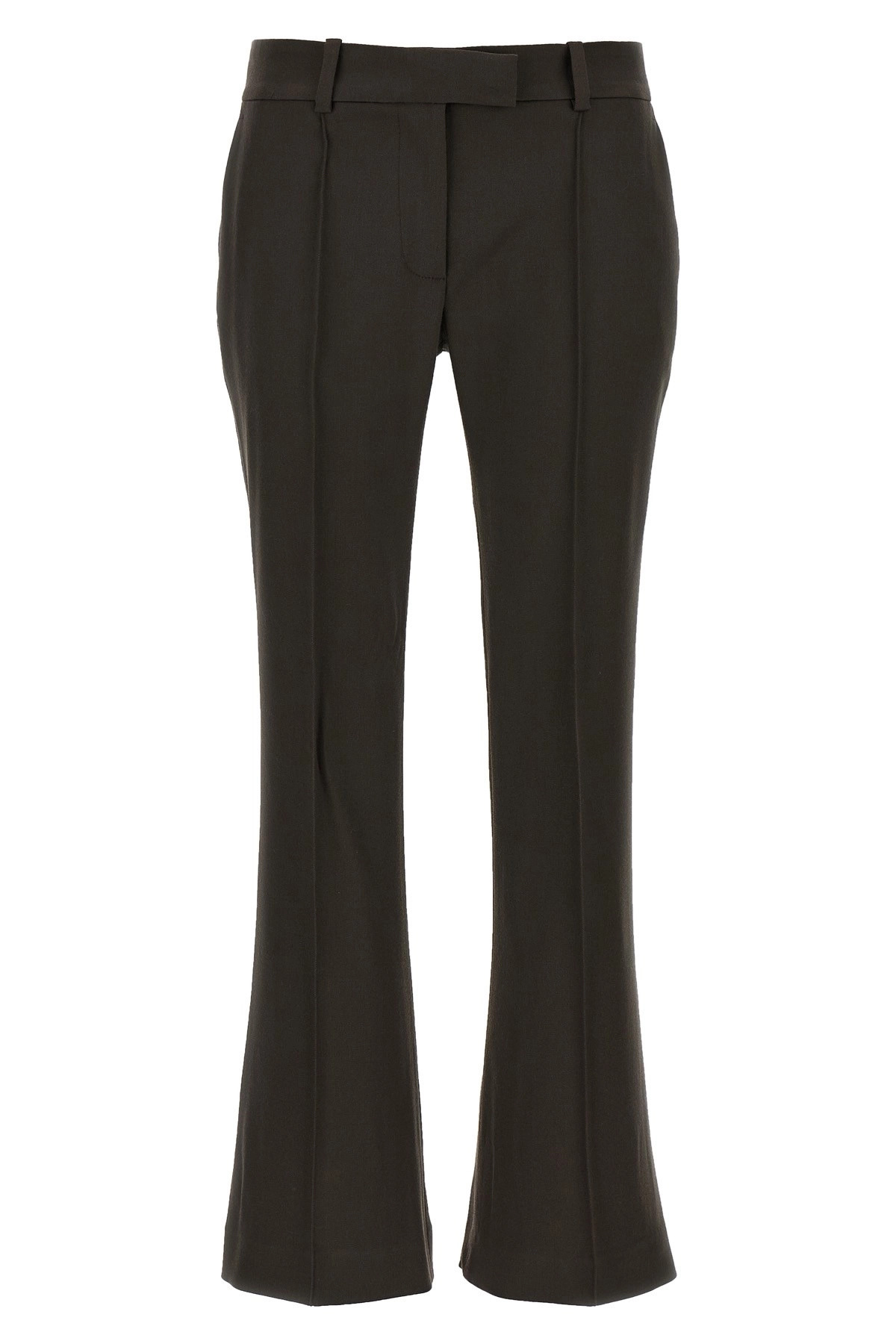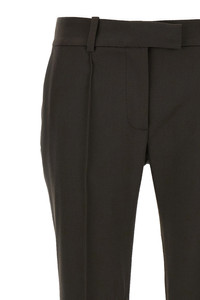 cod. 251WCP00266064 Stretch wool gabardine trousers, crop model with flared leg, stitching and zip closure, hook and buttons on the front, pockets. Color: Brown Size & Fit: true to size fit Composition: 98% virgin wool 2% elastane Made in: Italy