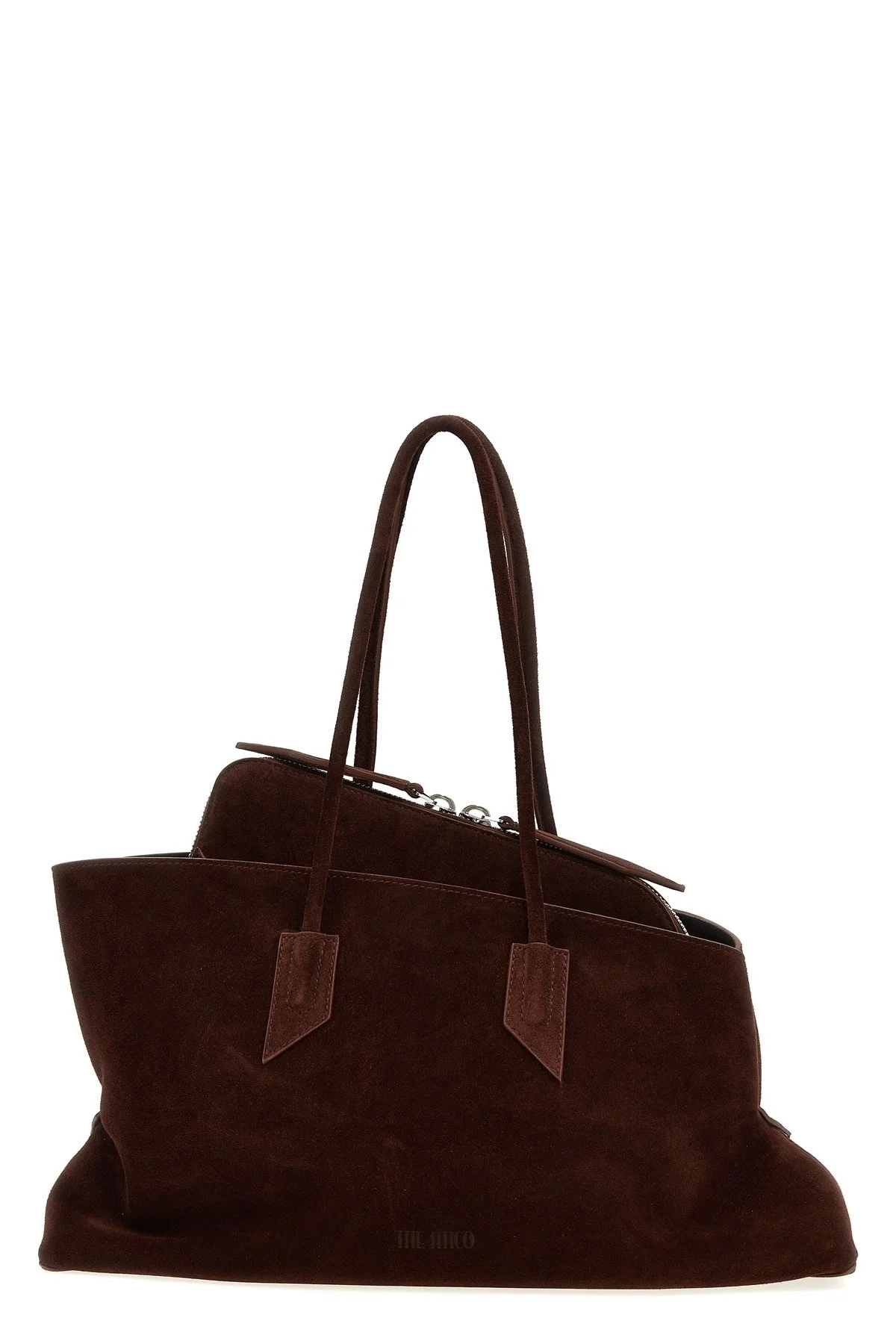 cod. 250WAH00054850 'La Passeggiata' suede shopping bag with fixed tubular handles, zip closure, inner pocket. Color: Brown Size & Fit: W 42.5 x H 26 x D 16 cm Composition: 100% calfskin leather Made in: Italy