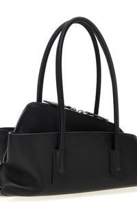 cod. 250WAH00058100 'La Passeggiata Small' leather shoulder bag, double fixed handle, top zip closure, side pockets, metal details. Color: Black Size & Fit: W 37 x H 16 x D 11 cm Composition: 100% lamb leather Made in: Italy