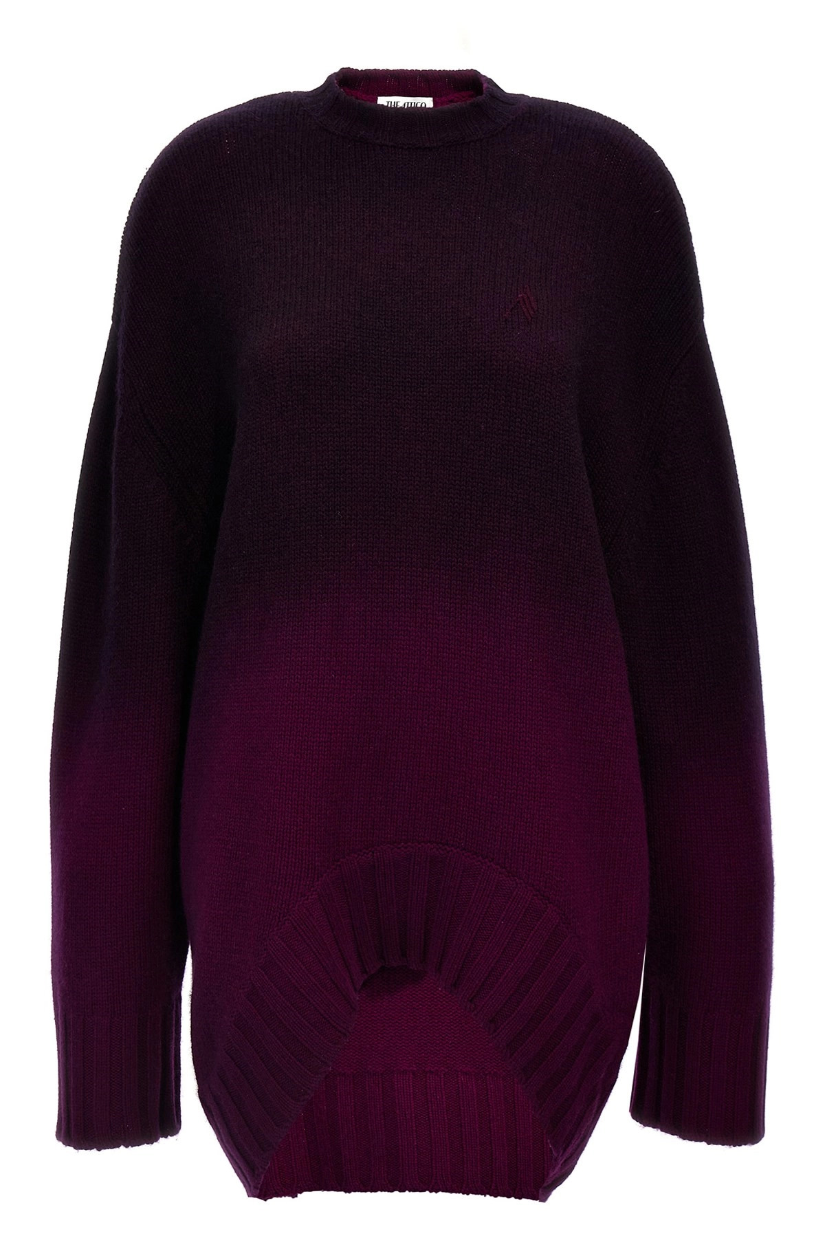 cod. 248WCA360KW046783 Oversized wool and cashmere blend knit dress with front logo embroidery, crew neck, long sleeves, curved hem. Color: Purple Size & Fit: oversized fit Composition: 70% wool 30% cachemire Made in: Romania
