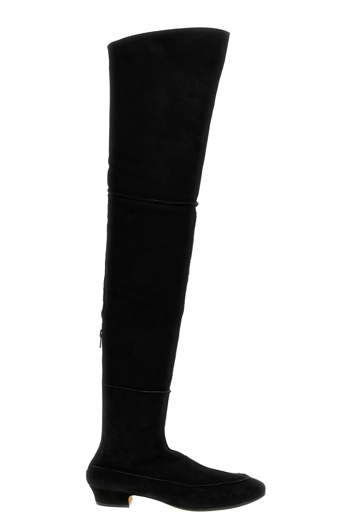 cod. F1530SH01BLK 'Awar' suede sherling cuissard boots with panel structure, rounded toe, half zip at the back, leather sole. Color: Black Size & Fit: EU WOMEN Composition: 100% lamb leather Made in: Italy
