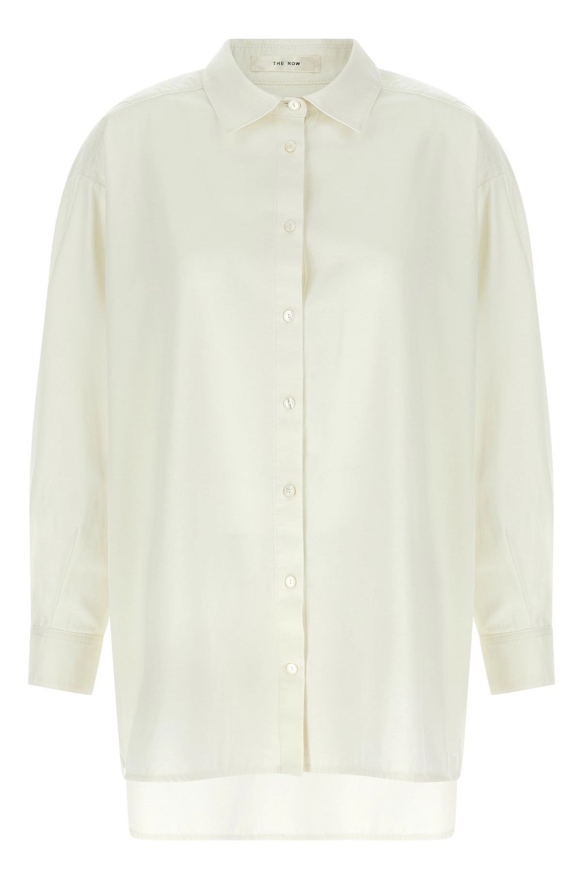 cod. 5648W3670WHT 'Luka' cotton and cashmere gabardine shirt with front button closure, long sleeves with cuffs and dropped shoulders, asymmetrical hem. Color: White Size & Fit: oversize fit - US sizing Composition: 95% cotton 5% cashmere Made in: Italy