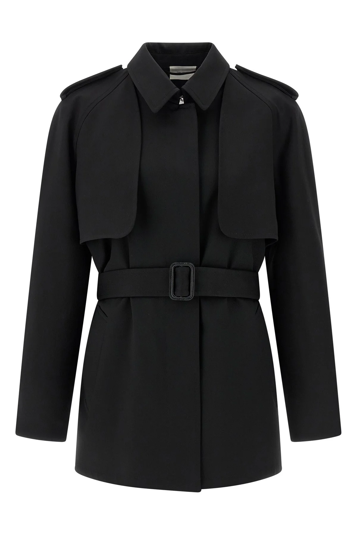 cod. 10601W4255BLK 'Usuaia' wool gabardine jacket with single-breasted front closure with concealed buttons, detachable sleeves, knotted and adjustable waist belt with buckle, side pockets. Color: Black Size & Fit: True to size fit US SIZING Composition: 100% virgin wool Made in: Italy PROMO CODE NOT APPLICABLE