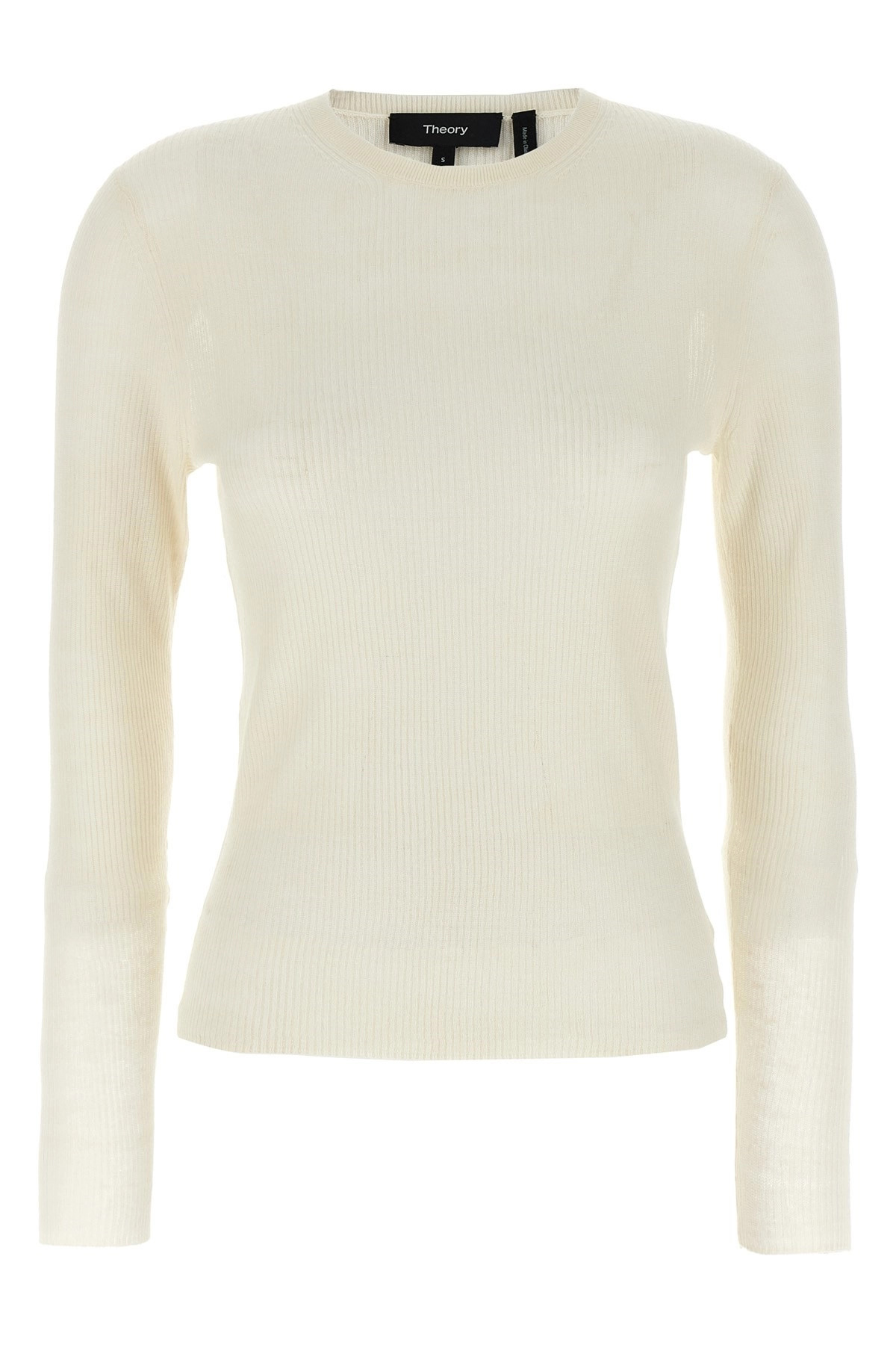 cod. P0513707Q3W Ribbed linen and viscose blend sweater, round neckline, long sleeves. Color: White Size & Fit: true to size fit Composition: 75% linen, 25% viscose Made in: China