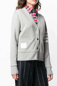 cod. FJT069A00535055 Cotton cardigan with '4 Bar' detail on the sleeve, a button closure and a long cuffed tip. Color: Gray Material: 100% cotton Made in: Japan Size &Fit: True to size fit