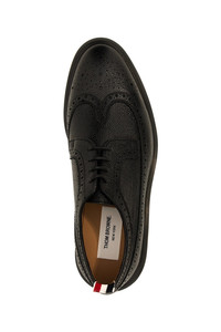 cod. MFD002H00198001 Thom Browne 'Classic longwing’ 'pebble grain' leather brogues featuring a rubber sole, a striped fabric detailing at the back. Color: Black Material: 100% calfskin leather (bos taurus) Made in: Italy Size&Fit: US MEN