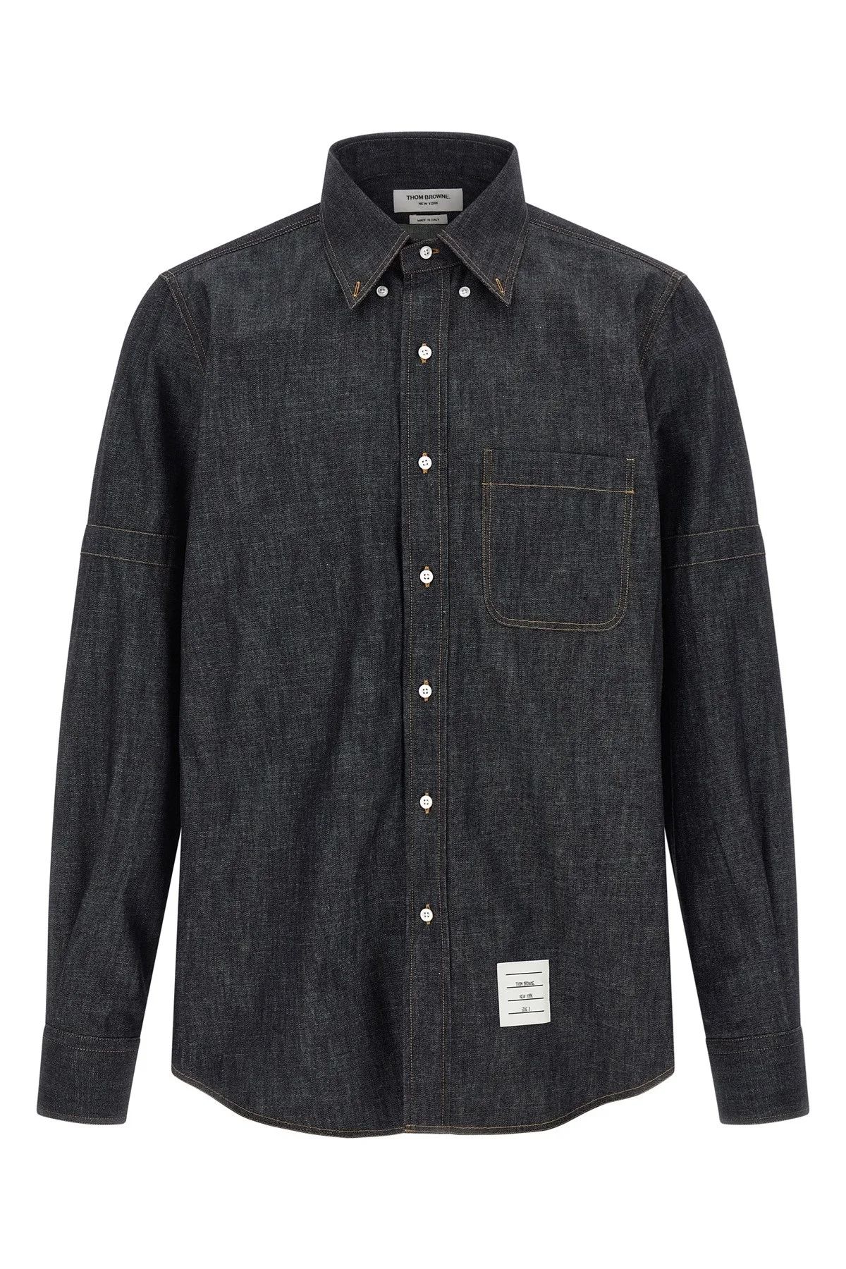 cod. MWL435SF1105415 Cotton denim shirt with contrast stitching, button-down design, logo patch and front button closure, breast pocket, long rolled sleeves with cuffs with RWB grosgrain tape lining. Color: Blue Size & Fit: true to size fit Composition: 100% cotton Made in: Italy
