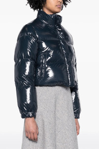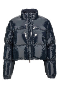 cod. FBD061X02508415 Reversible down jacket in 'Herringbone Harris Tweed' wool and shiny nylon, goose down padding, zip and button closure, pockets, long sleeves with elastic cuffs. Color: Blue Size & Fit: true to size fit Composition: 100% wool Made in: Italy