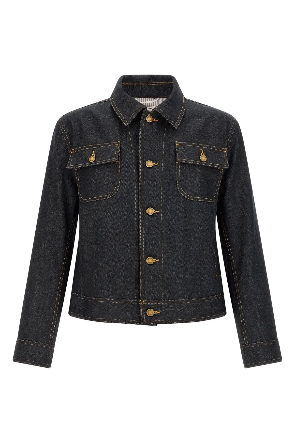cod. MJO256SF1101415 Japanese selvedge cotton denim jacket with contrast stitching, flared silhouette, shirt collar, front button closure, pockets, long cuffed sleeves. Color: Blue Size & Fit: true to size fit Composition: 100% cotton Made in: Japan