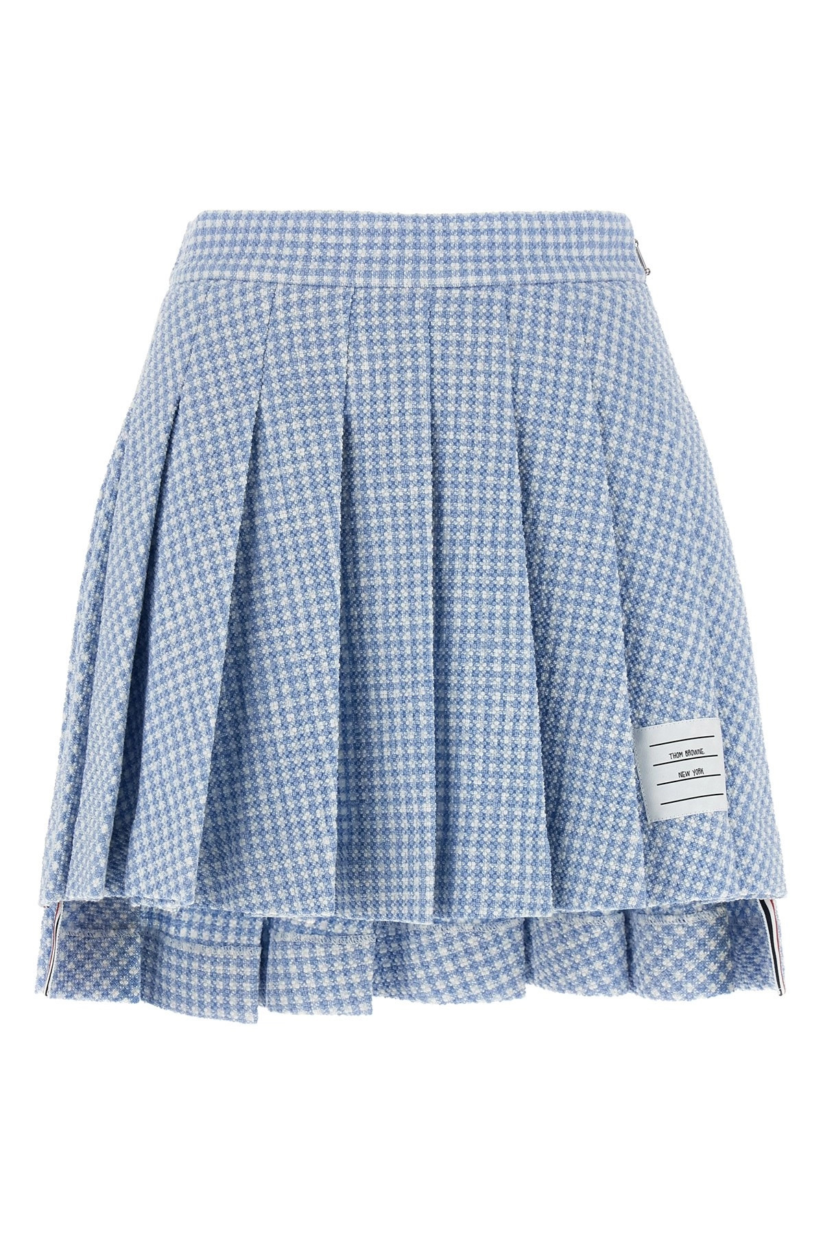 cod. FJK143AJ0222480 Ghingam pleated cotton tweed skirt, side zip closure, asymmetrical hem with RWB detail. Color: Light Blue Size & Fit: True to size fit Composition: 92% cotton 7% polyamide 1% elastane Made in: Italy